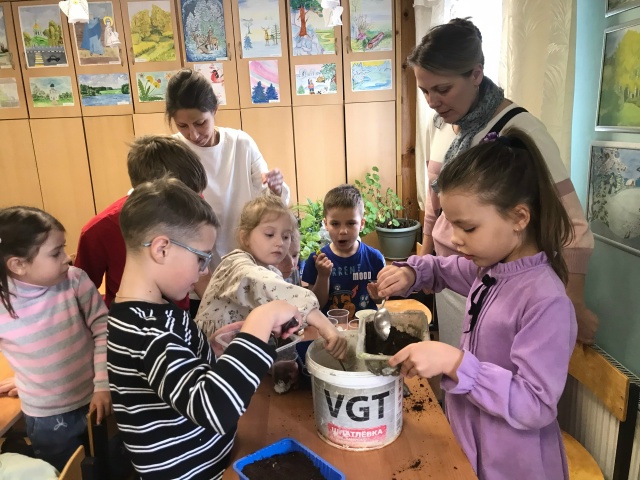 5 апреля в воскресной школе Троицкого храма г. Озеры учащиеся младшей группы готовились к проведению экологической акции « Зелёный дом». Они вместе с родителями и педагогами посадили отростки комнатных растений, посеяли однолетние цветы.