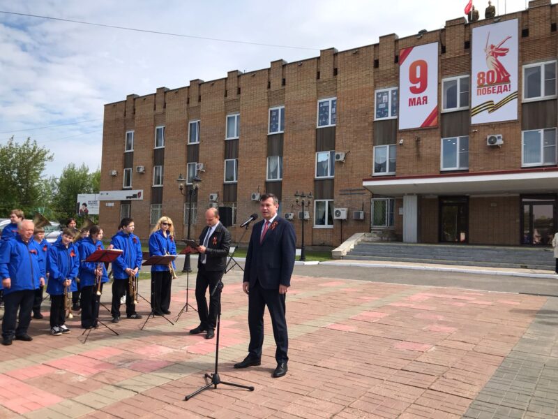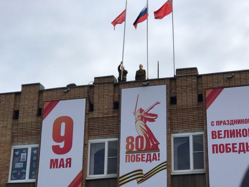 7 мая в г. Озëры перед центральным входом в администрацию состоялась церемония поднятия флага Российской Федерации и копии Знамени Победы.