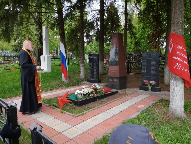 Перед началом митинга у мемориала неизвестного солдата настоятель Успенского храма протоиерей Димитрий Князев совершил литию по погибшим.
