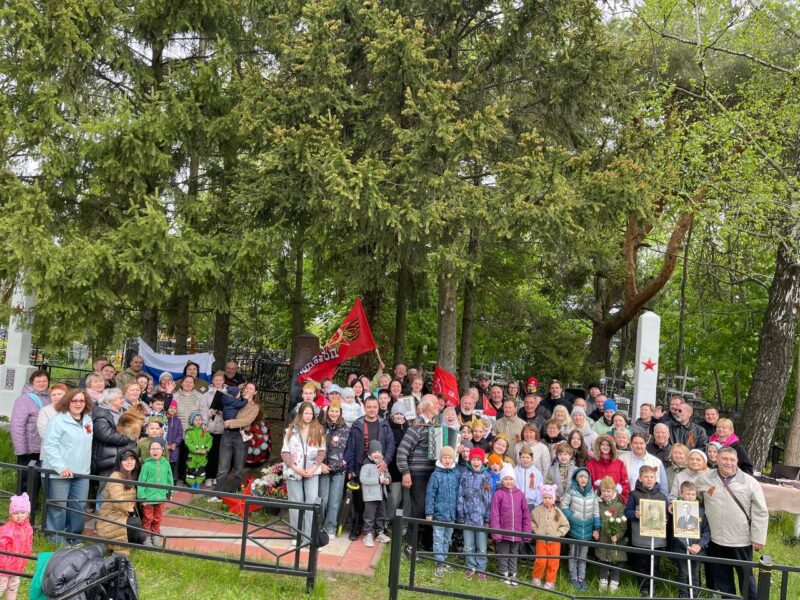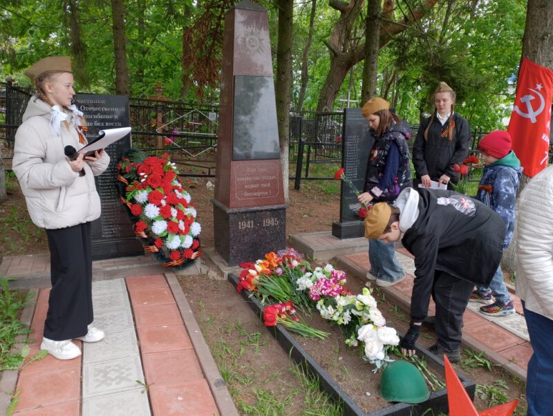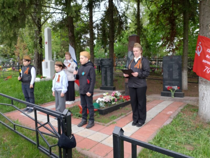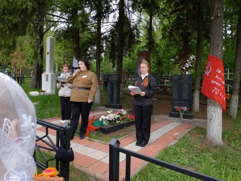Память погибших почтили минутой молчания. К мемориалу были возложены венки и цветы. Прозвучали стихи и песни военных лет.