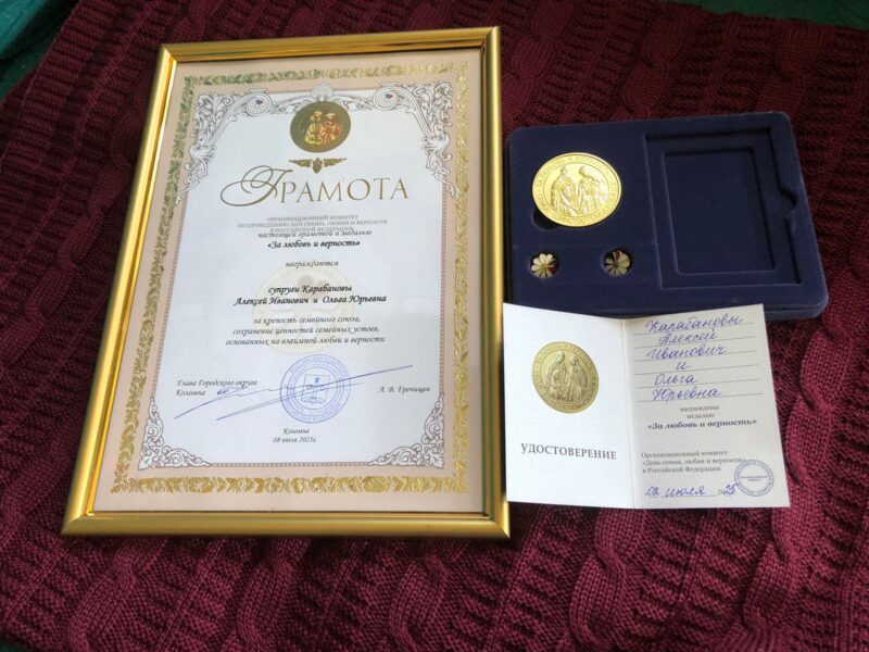 Семья протоиерея Алексия Карабанова награждена грамотой и медалью «За любовь и верность».