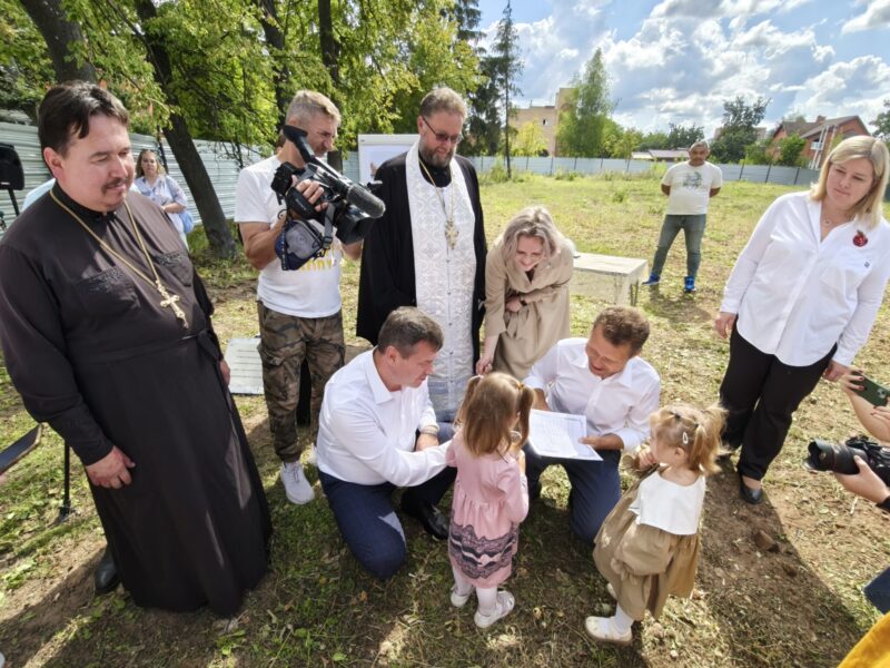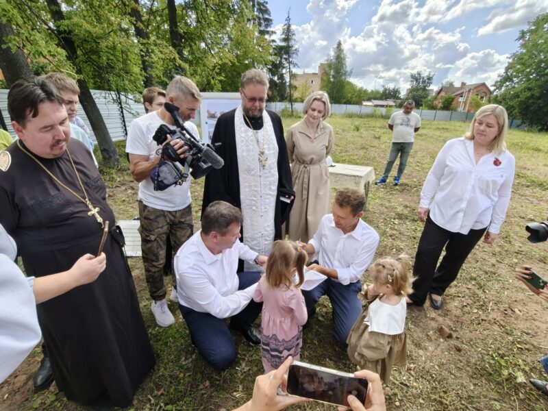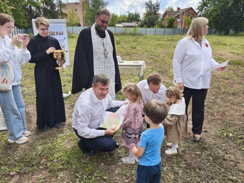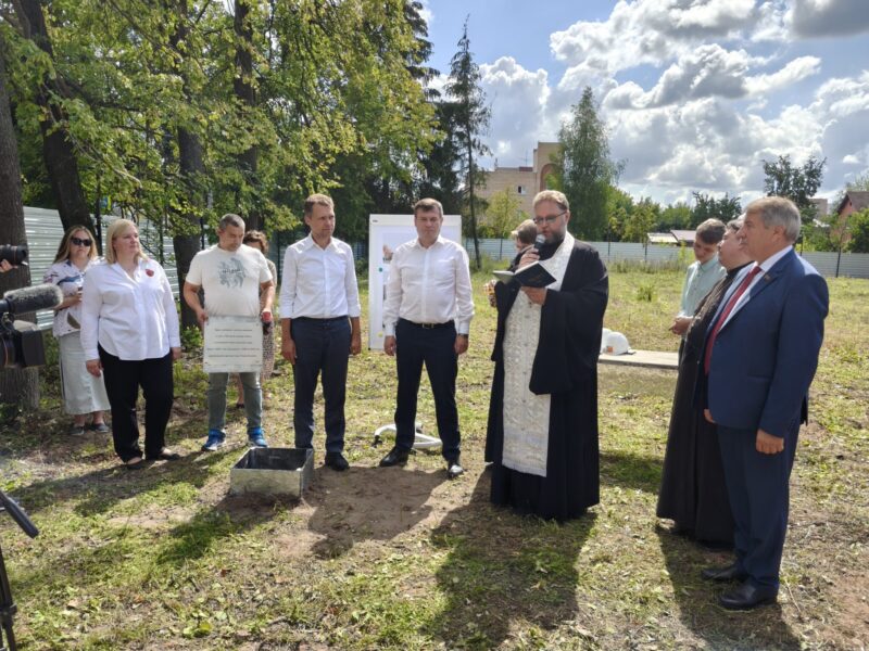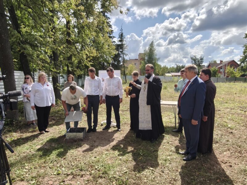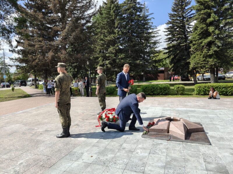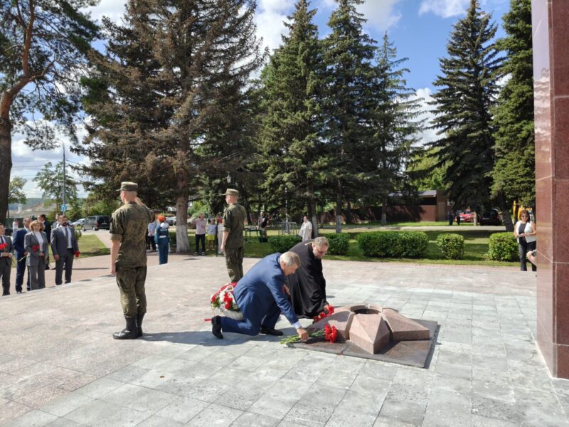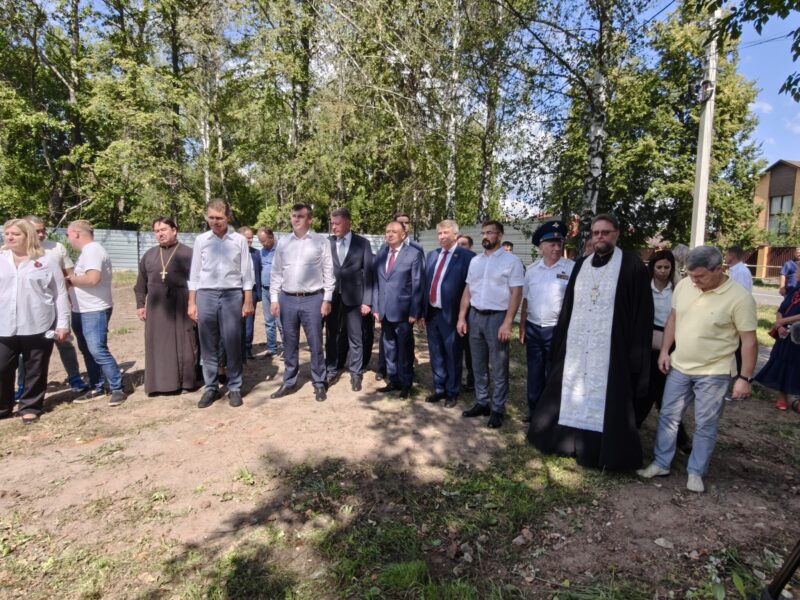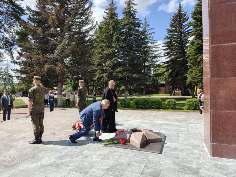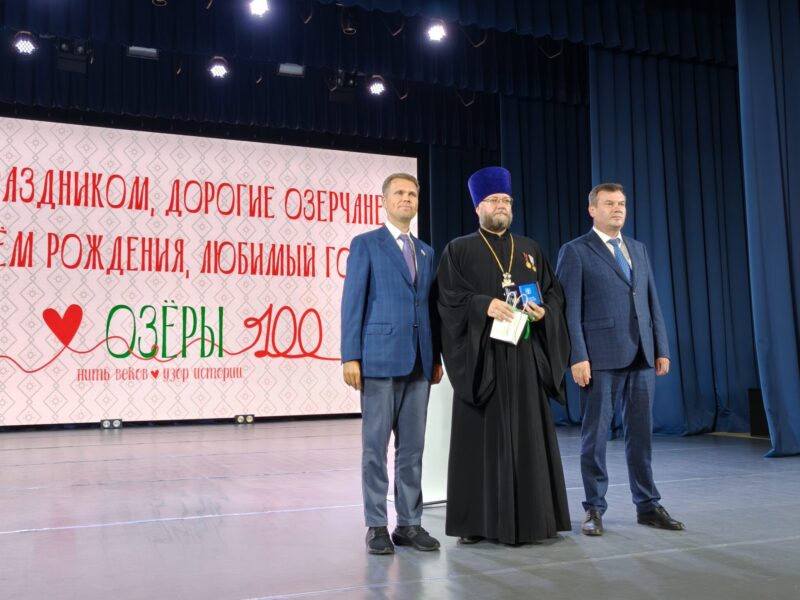 Благочинный церквей Озёрского округа иерей Евгений Кочетков принял участие в возложении цветов к Вечному огню, закладке камня в основание нового детского сада и в торжественном концерте.