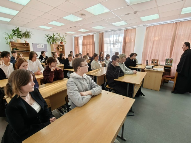 3 февраля в 10 а и 11 б классах школы № 2 прошла встреча со священником в рамках просветительской акции «Задай вопрос священнику». Настоятель Покровского храма села Сосновка иерей Арсений Писаревский побеседовал со старшеклассниками на тему «Любовь. Влюбленность. Семья». Ребята обсудили с батюшкой вопросы свободы выбора и ответственности за то или иное решение.