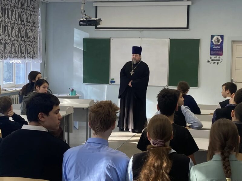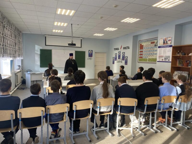 В Редькинской школе прошёл урок в рамках ОРКСЭ и просветительской акции «Задай вопрос священнику». Мероприятия провёл настоятель Вознесенского храма села Сенницы протоиерей Алексий Карабанов.