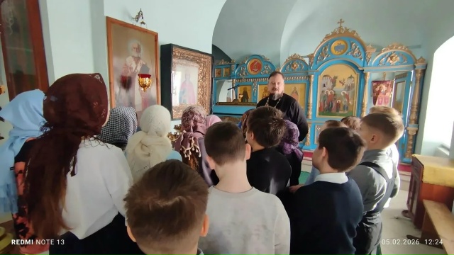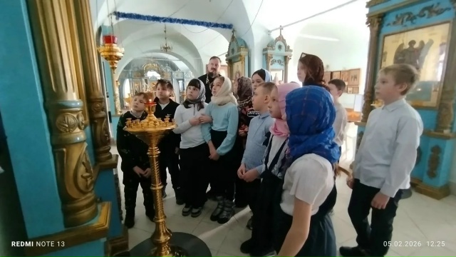 5 февраля Сергиевский храм с. Горы посетили ученики 4 класса Горской школы. Настоятель храма иерей Сергий Смольянинов рассказал им об устройстве храма и о небесных покровителях Сергиевского храма.