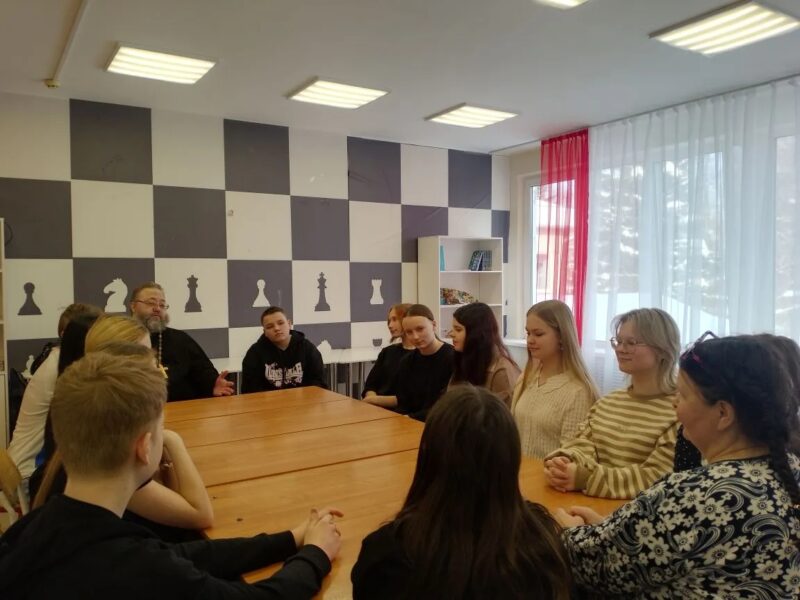 6 февраля состоялась встреча настоятеля Преображенского храма иерея Алексия Иванова со школьниками 8-9 классов Бояркинской школы. Общение прошло в формате круглого стола в рамках внеклассного мероприятия на тему «Нравственные проблемы современности: взгляд церкви, государства и общества».