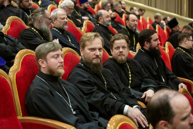 12 февраля в Зале церковных соборов кафедрального соборного Храма Христа Спасителя в Москве под председательством Святейшего Патриарха Московского и всея Руси Кирилла, являющегося главой Московской митрополии, состоялось общее собрание духовенства Московской митрополии.
