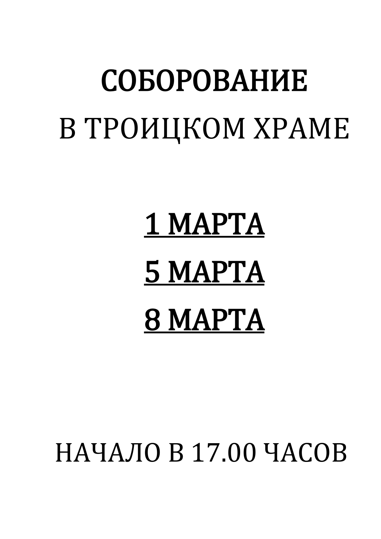 • РАСПИСАНИЕ БОГОСЛУЖЕНИЙ ТРОИЦКОГО ХРАМА